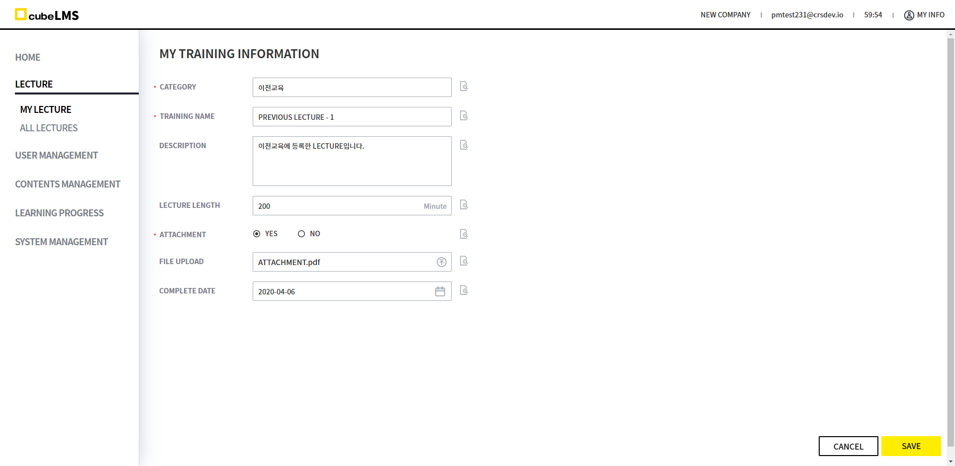 - My Lecture - All - Lecture Details (단, 이전교육 카테고리에 한함) - My Training Information